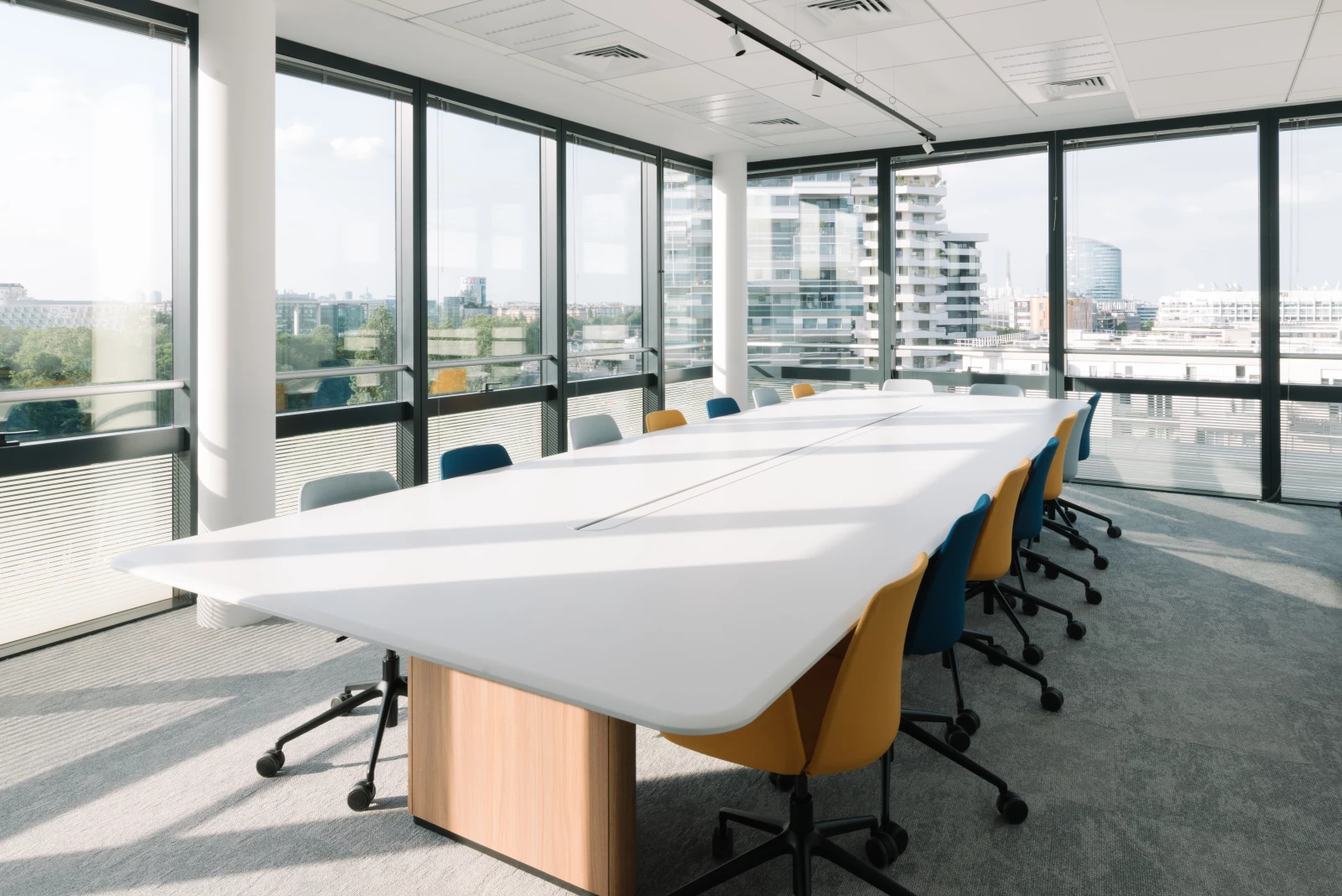 Le projet intègre de nombreux espaces collaboratifs : salles de réunion équipées pour la visioconférence, zones de coworking, bureaux privatifs et salons informels. Des services pensés pour le bien-être, comme les douches et les espaces de détente, complètent l'aménagement.